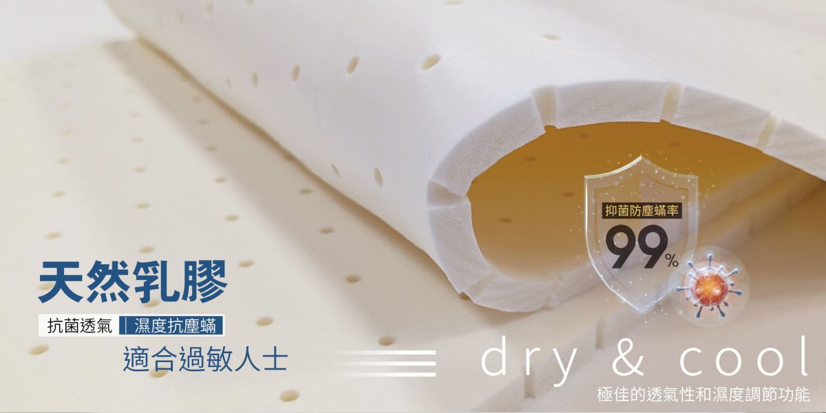 具有極佳的自體透氣性和濕度調節能力,作為床墊內材能有效排除多餘的熱氣和濕氣,保持床墊的乾燥和涼爽,天然乳膠天然抗菌,具有良好的衛生性能,有助於減少細菌和塵蟎的滋生床墊,保護你的睡眠品質,減少過敏反應和呼吸道問題,因此乳膠在床墊中扮演了重要的角色